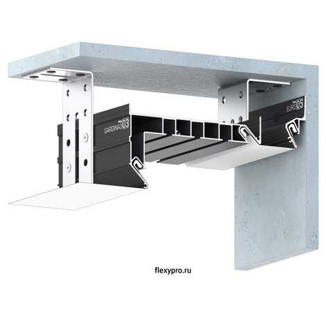 Профиль Flexy GARDINA3 03 для изготовления скрытых карнизных ниш с тремя пазами для установки штор и гардин. Для гарпунной системы крепления полотна с боковой заправкой.
