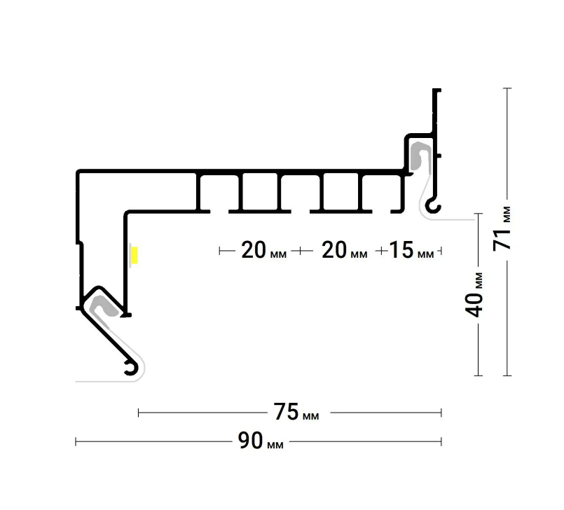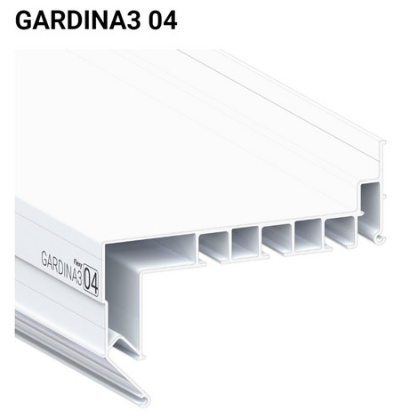 Профиль Flexy GARDINA3 04 для изготовления скрытых карнизных ниш с тремя пазами для установки штор и гардин. Для гарпунной системы крепления полотна с нижней заправкой.