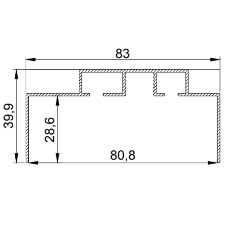 Один профиль выполнен в виде ниши (профиль DK), в которой фиксируется полотно, второй- в виде алюминиевого карнизного вкладыша (профиль VDK) с двумя рядами для крепления штор.