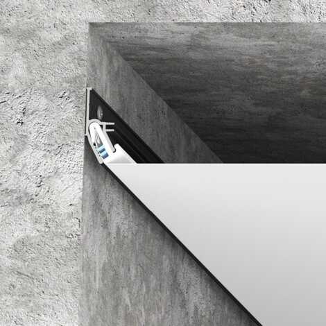 Система крепления полотна состоит из алюминиевого профиля Umbra и двухкомпонентной вставки CLAMP.
