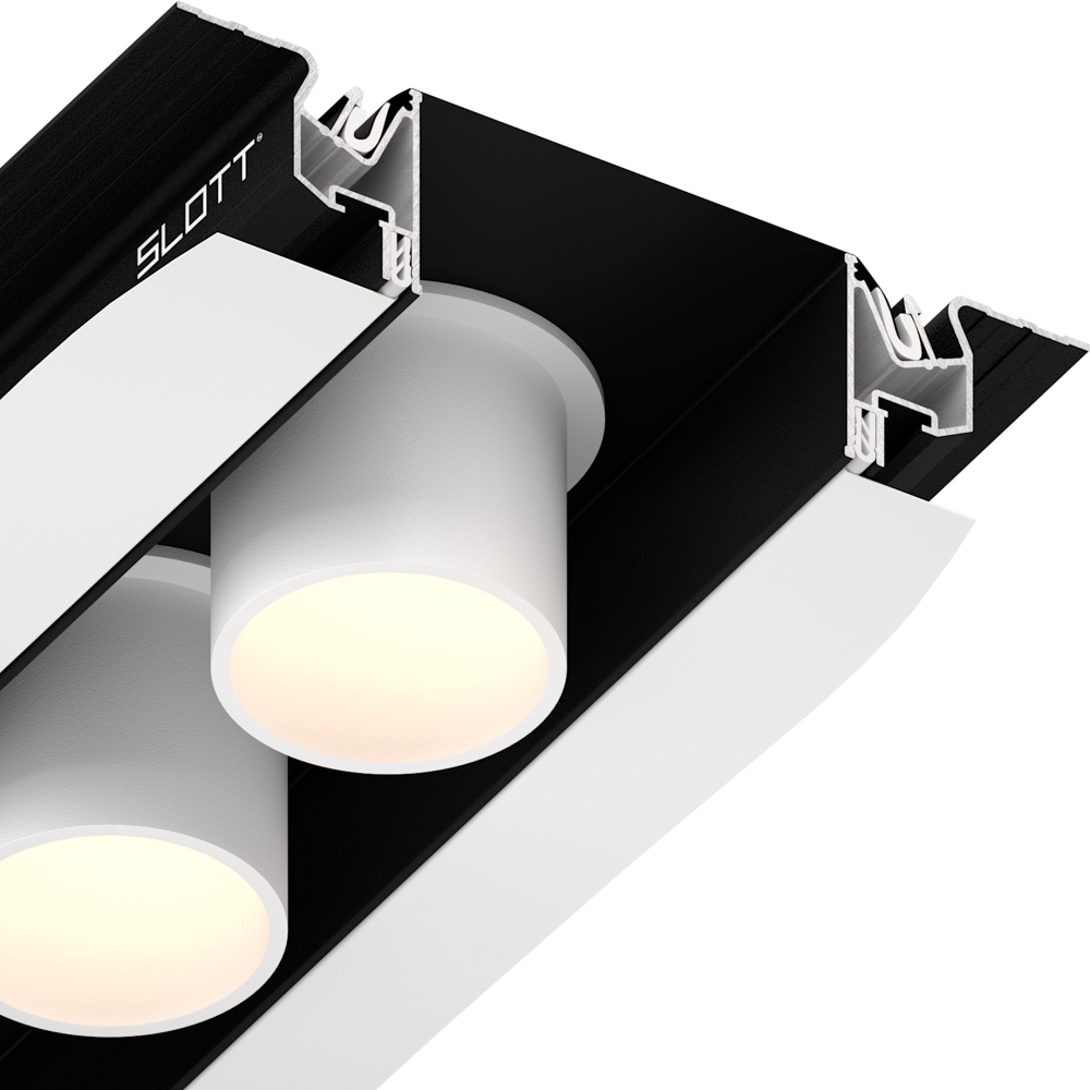 Профиль Slott 40, чёрный (2м) предназначен для монтажа в натяжной потолок ПВХ. Можно использовать в качестве основного освещения (световые линии) или в качестве базы в виде черной ниши для размещения дополнительных осветительных приборов и/или трек-системы.
