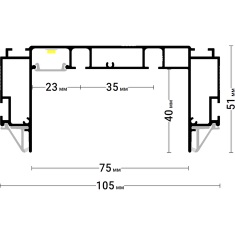 Профиль Flexy IZI KARNIZ2 05 для изготовления скрытых п-образных карнизных ниш с двумя пазами для установки штор и гардин. С подсветкой.