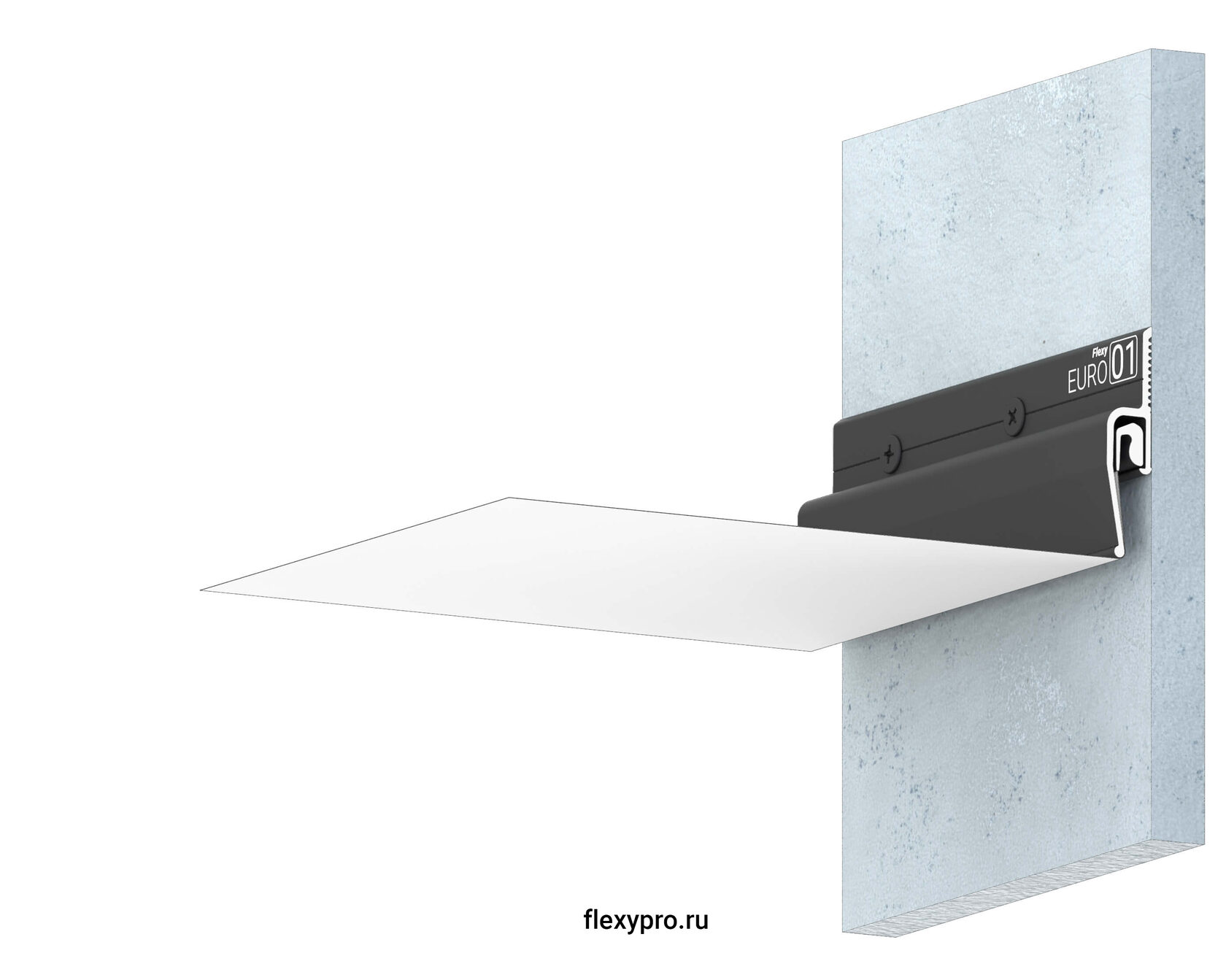 Стеновой профиль Flexy EURO 01 с теневым зазором для натяжных потолков с гарпунной системой крепления полотна.