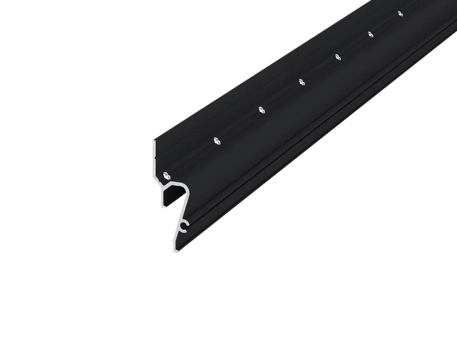 Теневой профиль ALTEZA Delta1 Climatic чёрного цвета предназначен для монтажа натяжных потолков в помещениях, подверженных поддувам и втягиванию полотен. Он обеспечивает циркуляцию воздуха через специальные отверстия и создаёт эффект тени вдоль стен. Профиль имеет габариты сечения 36,6 х 13,6 мм и отступ зазора от стены 7,5 мм. Его длина составляет 200 см, а система монтажа — гарпунная.