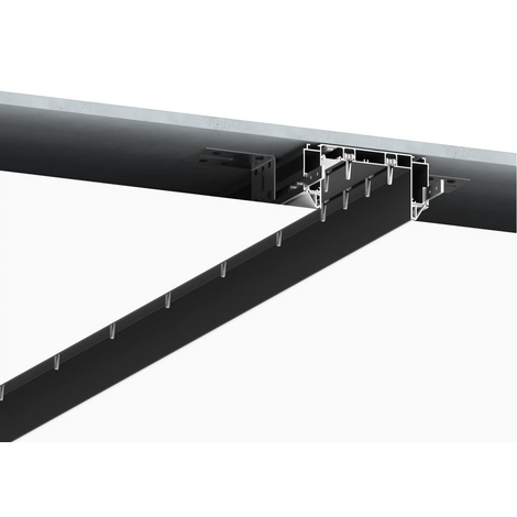 Черный профиль Flexy IZI KARNIZ2 05 для изготовления скрытых п-образных карнизных ниш с двумя пазами для установки штор и гардин. С подсветкой.