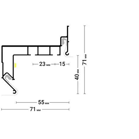 Профиль Flexy GARDINA2 01 для изготовления скрытых карнизных ниш с двумя пазами для установки штор и гардин. Для гарпунной системы крепления полотна с нижней заправкой.