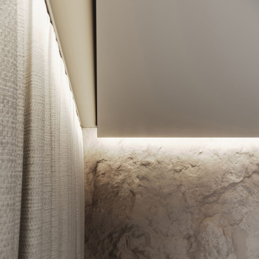 Профиль позволяет красиво “оборвать” натяжной потолок с получением ровного закрытого торца и подсветкой, закрытой рассеивателем