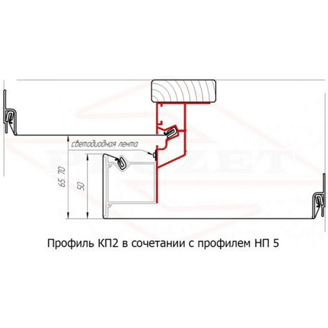 КП2 — каркасный профиль, выступает в качестве «рамы» для подвеса других профилей. Обеспечивает монтажную поверхность высотой 90 мм. Наиболее часто используется в комплексе с профилем НП5.