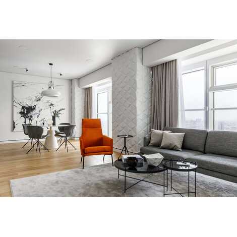 • монтаж не зависит от материала отделки стен (3д панели, штукатурка, обои, декоративный камень и др.)