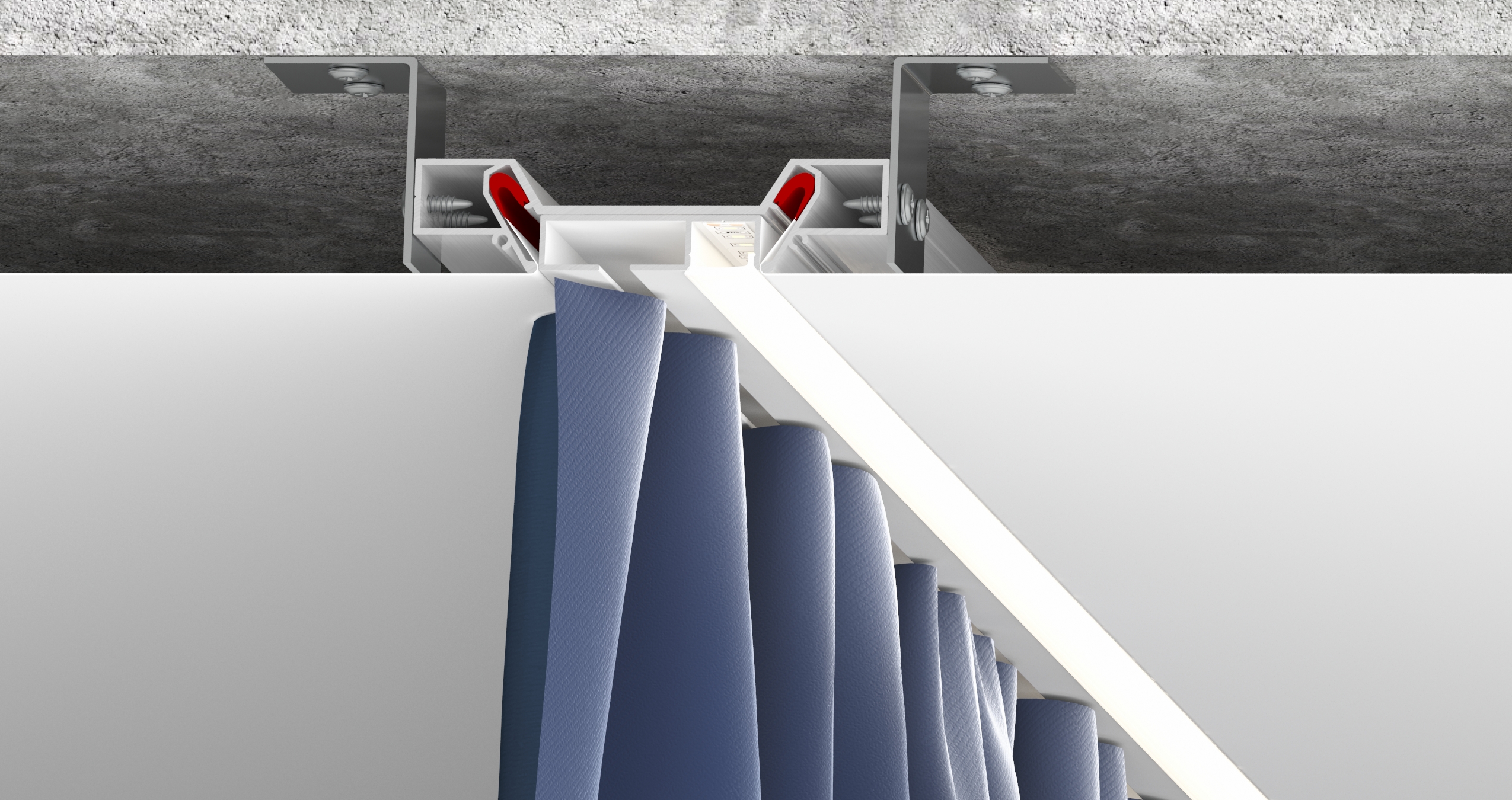 Профиль MK01 крепится к потолку при помощи анкерных уголков совместно с вкладышем VMK01.