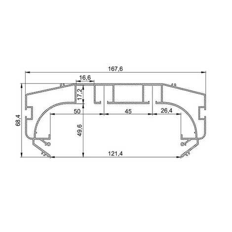 Скрытый карниз SK Magnum: Разновидность дизайнерского карниза. Он представляет собой цельнометаллический профиль белого или черного цвета с двумя рядами для крепления крючков. Обладает увеличенным размером между рядами для крепления штор. Карниз имеет оптимальную ширину, для того чтобы складки на шторах формировались правильно. Возможна установка светодиодной ленты для подсветки штор. Конструкция профиля предусматривает фиксацию полотна при помощи гарпунной системы крепления. Паз для фиксации гарпуна закрывается маскирующей вставкой, алюминиевой или ПВХ.
