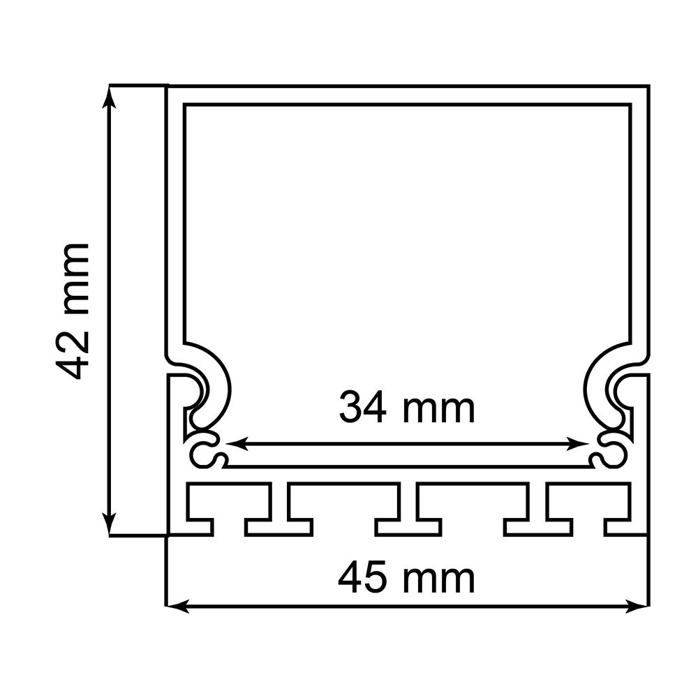 Профиль накладной 42х45мм, алюминиевый, серебро, 2м, CAB268 (в комплекте 2 заглушки, 4 крепежа)