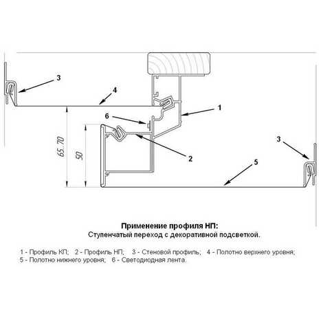 Профиль НП 5 (нижний) для двухуровневого перехода с подсветкой Прозет (используется совместно с профилем КП 2).