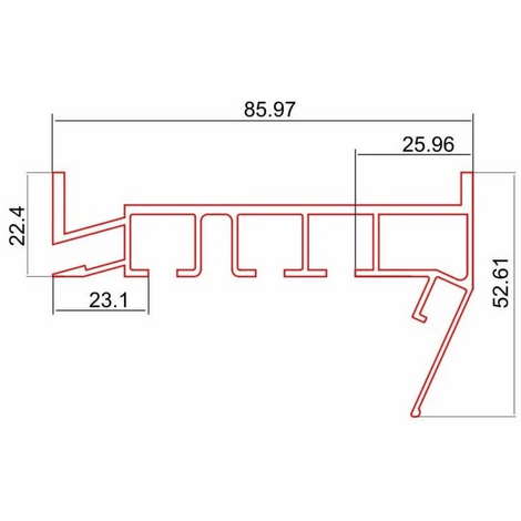 Профиль представляет собой шину для штор трёхполосную под роликовые крючки, совмещенную с пазом для заведения гарпуна полотна. Таким образом совершается и упрощается монтаж «скрытой гардины», торец полотна закрыт, полотно заведено до основного потолка. Это модернизированный вариант классического профиля ПК-5 карниз. Увеличена высота отбойника, добавлены крепежные элементы, изменен пристенный замок.