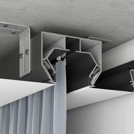 Прекрасное решение для формирования более глубокой ниши для штор в натяжном потолке. Он представляет собой черную или белую нишу в виде прямой линии. Такой вариант только от стены до стены. Есть возможность установки светодиодной подсветки. Так же такой вариант подходит для установки в ванной комнате. Для шторки душа. Если вам подходит такой вид конструкцию, то идеальным вариантом будет профиль выполненный из алюминия, а не ПВХ или дерева. Такие изделия способны выдержать самые большие нагрузки.