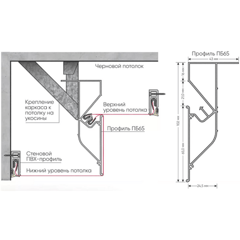 Применение бесщелевого профиля позволяет реализовать проекты, в которых сочетаются разные полотна и при этом нет