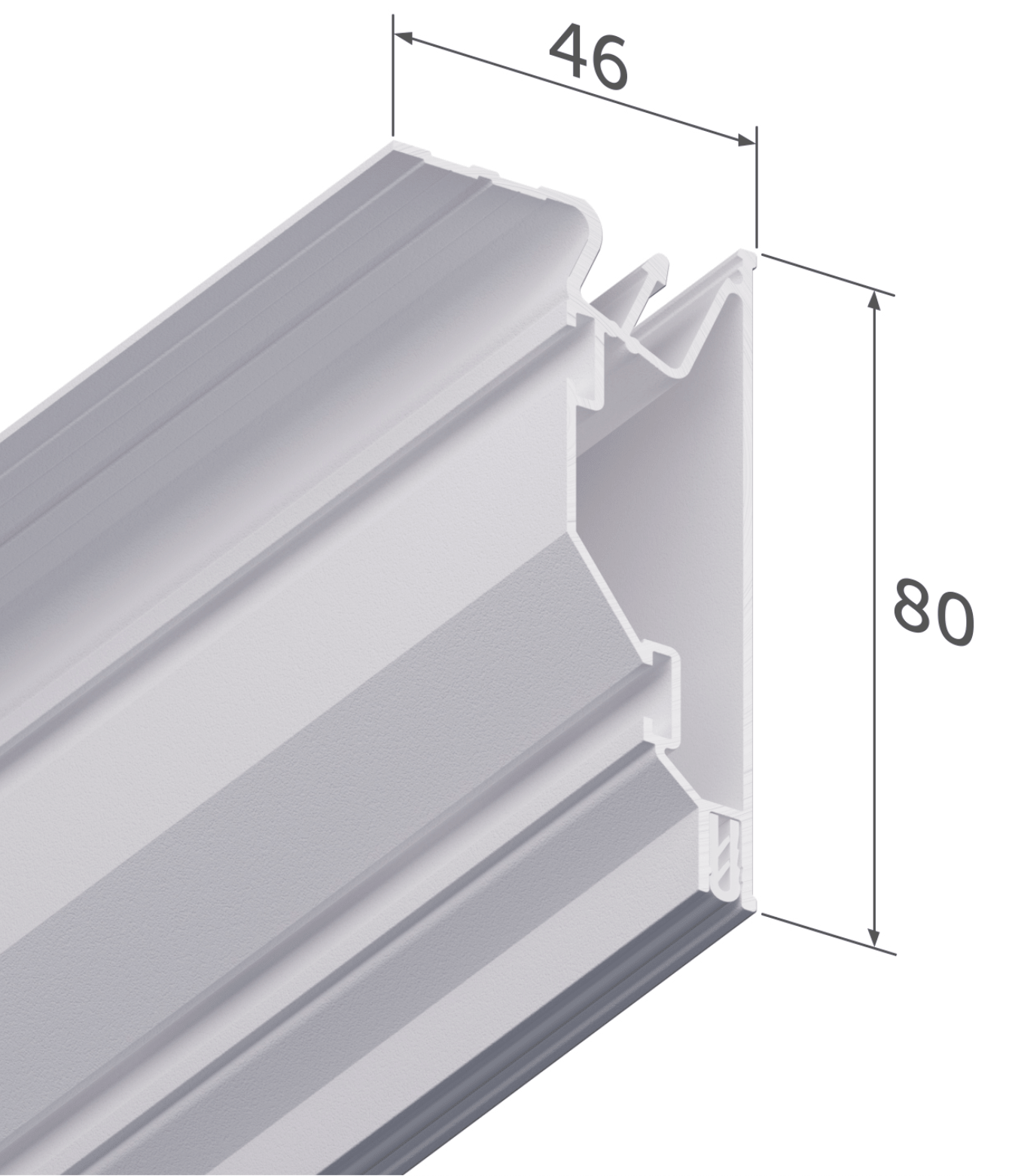 Профиль SLOTT 80 — это многофункциональный алюминиевый профиль, предназначенный для установки ПВХ и тканевых натяжных потолков. Этот профиль относится к классу демпферных систем, благодаря чему обеспечивается надежное и равномерное удерживание полотна, создавая бесщелевое и эстетичное прилегание к металлу.