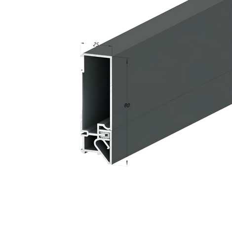Конструкционный профиль без подсветки высотой 80 мм. Профиль имеет стандартные размеры: 80 мм в высоту и 25 мм в ширину.