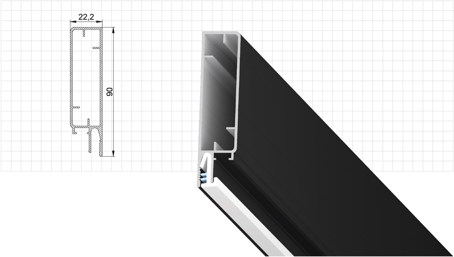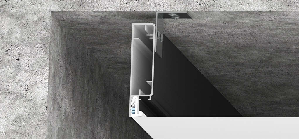 При помощи профиля Level 90 монтируется потолок из тканевых или ПВХ материалов с переходом уровня высотой 90 мм с видимой вертикальной частью профиля черного или белого цвета. Конструкция профиля предусматривает возможность использования опционального профиля Clamp Top для фиксации верхнего уровня полотна при помощи системы крепления Clamp, которая предназначена для монтажа любых тканевых и ПВХ материалов.