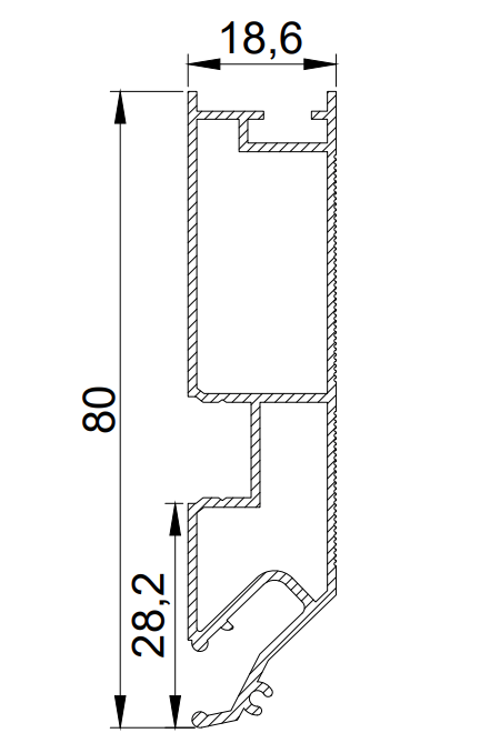 Профиль LumFer PDK80 рекомендуется к установке вдоль стен с окнами для организации ниши под карниз. Профиль LumFer PDK80 можно использовать для установки вдоль закругленных стен и для эркерных помещений. Профиль крепится к потолку при помощи анкерных уголков. При монтаже LumFer PDK80 расстояние от базового потолка до натяжного потолка составит от 8 см.