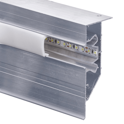 Профиль применяется для построения криволинейной двухуровневой конструкции натяжного потолка с местом для добавления подсветки. Теперь не нужно на объекте резать профиль, он продается уже с готовыми пропилами.