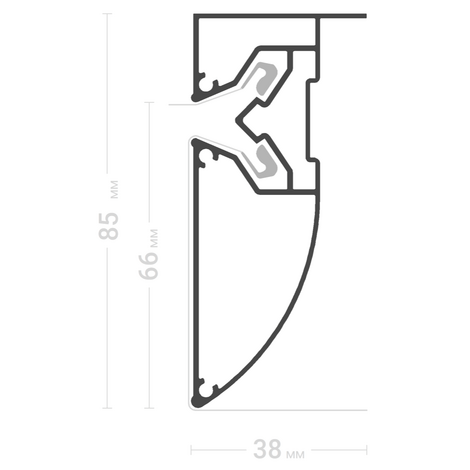 Алюминиевый профиль используется для изготовления конструкций простого перехода уровня без подсветки. Высота ступени 65мм. Длина профиля 2,0м. Декорируется разделительной овальной вставкой.