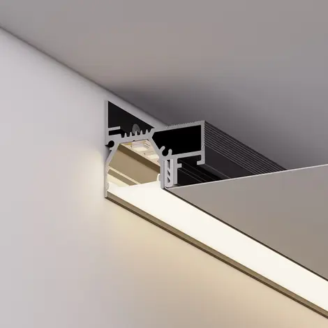 Алюминиевый профиль черного цвета - RAL9005 (порошковая окраска). Боковая линия света в натяжных потолках. Решение 2-в-1: служит каркасом для крепления натяжного потолка и профилем для установки светодиодной ленты. Источник света находится вровень с плоскостью натяжного потолка. Демпферная система крепления полотна натяжного потолка подходит как для тканевых, так и для ПВХ полотен. Габаритные размеры профиля составляют 2000 мм в длину, 41,5 мм в ширину и 37,4 мм в высоту. Основная площадка для установки светодиодных лент шириной до 11,5 мм и две дополнительные площадки шириной по 10мм. Это обеспечивает гибкость в выборе светодиодных лент и создает потрясающие световые решения. Экран и другие аксессуары не включены в комплект и приобретаются отдельно. Цена указана за 2 метра профиля. Отличное решение для создания современных световых проектов.
