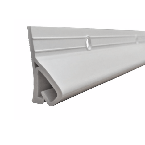 Багет "прищепка" стеновой представляет собой профиль ПВХ с упругим зажимом-клипсой. Выполнен из непластифицированного поливинилхлорида и имеет белый цвет. Его применяют для монтажа французских тканевых потолков Clipso (Клипсо) и немецких тканей Descor (Дескор).