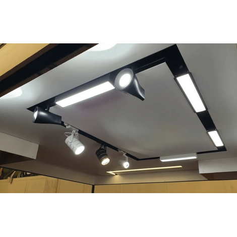 -   Чёрный профиль предназначен для размещения в нём дополнительного оборудования, такого как трек-системы, светильники L31/L61 или точечные.