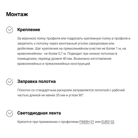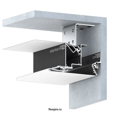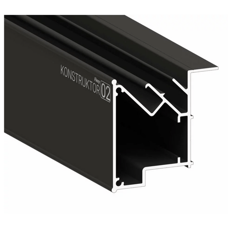 Профиль Flexy KONSTRUKTOR 02 цвета ЧЕРНЫЙ МУАР для многоуровневых натяжных потолков с гарпунной системой крепления полотна. Для изготовления ниш под установку накладных, точечных и линейный светильников. Применяется с профилями FINISH 01 или  EURO 02