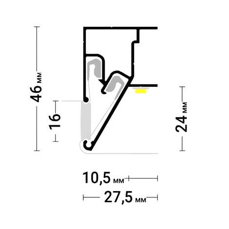 Профиль Flexy MURAVEJ 01 разработан для натяжных потолков с гарпунной системой крепления полотна и специально предназначен для интеграции трековых осветительных систем. Профиль оснащен встроенной полкой для светодиодной ленты, которая может служить как для основного, так и для декоративного освещения. Он обеспечивает аккуратное и скрытое крепление как светодиодной ленты, так и трековых систем, что позволяет создать современный и минималистичный интерьер с ровными световыми линиями. Профиль также подходит для создания ниш различной ширины для установки трекового освещения.