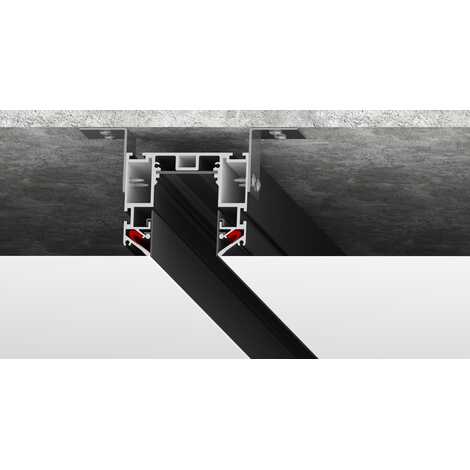 В конструкции используется специальный монолитный алюминиевый профиль, в который устанавливается контактная плата с токопроводящими дорожками и светильники. Полотно НП фиксируется при помощи гарпуна в специальных пазах. Таким образом LumFer Track 50 монтируется и располагается на одном уровне с НП.