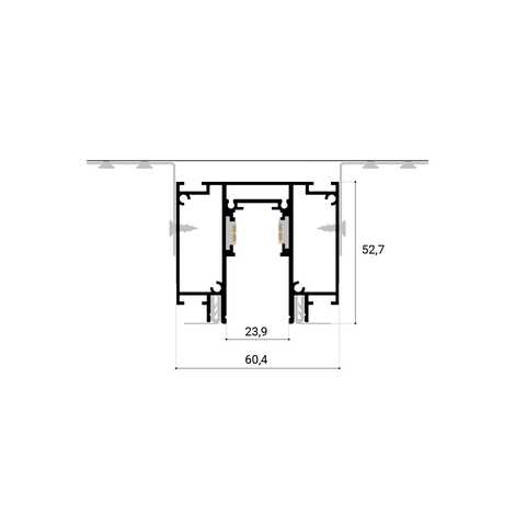 Токопроводящие шины располагаются на вертикальных стенках профиля, такое положение делает их незаметными для глаза. Безопасность системы обеспечивается низковольтным питанием 48В.
