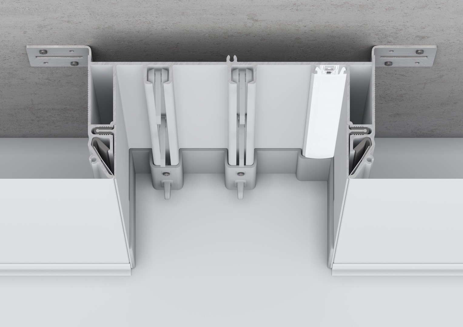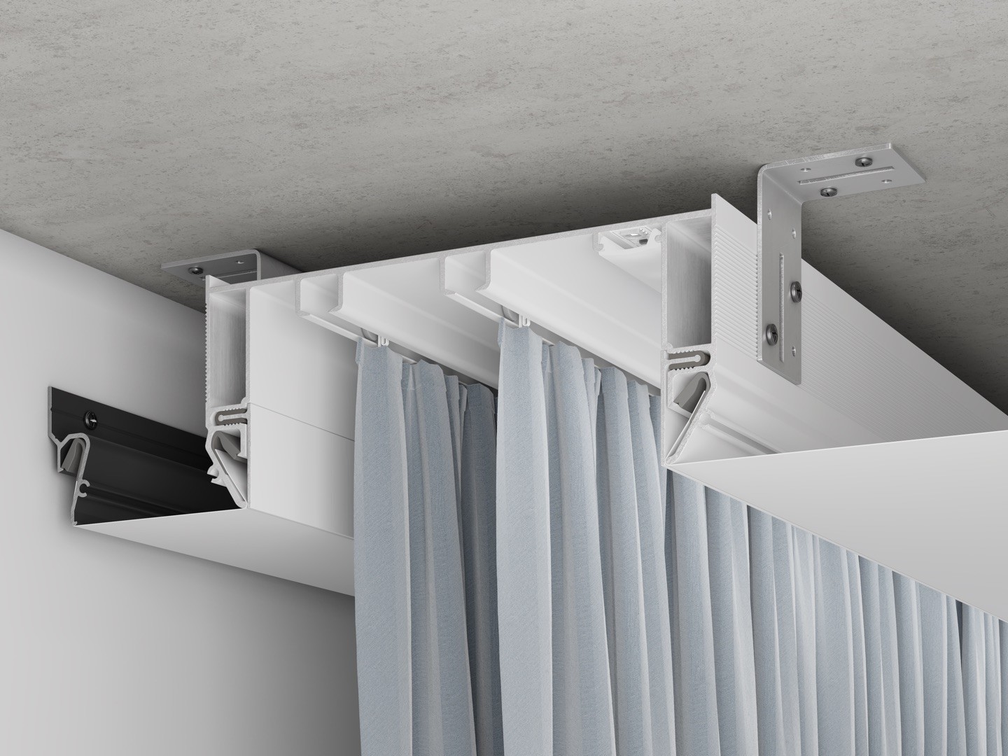За счет того, что карниз практически незаметен, создается эффект “левитации” шторы, будто она парит в воздухе, не касаясь поверхности потолка, что не нарушает общую гармонию интерьера.