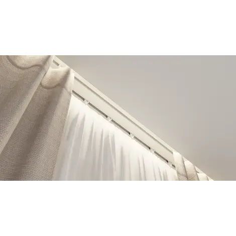 Система SLOTT Parsek — механический двухрядный карниз. Первый ряд предназначен для штор, второй для тюля. Профиль выполнен из цельного алюминия. Карнизная система образует нишу благодаря специально разработанному выступающему краю. Таким образом, бегунки скрыты от глаз, видимой частью остается только сама штора. Профиль поставляется в комплекте с демпфером.