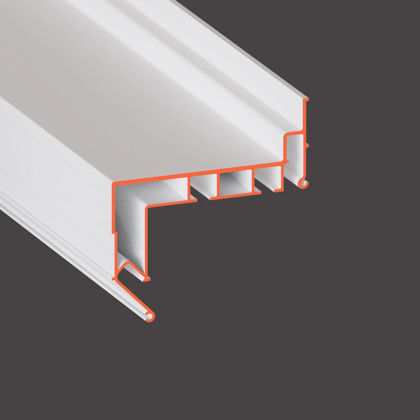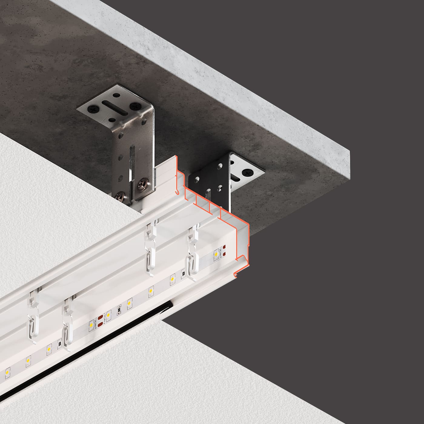 Профиль Flexy GARDINA2 01 для изготовления скрытых карнизных ниш с двумя пазами для установки штор и гардин. Для гарпунной системы крепления полотна с нижней заправкой.