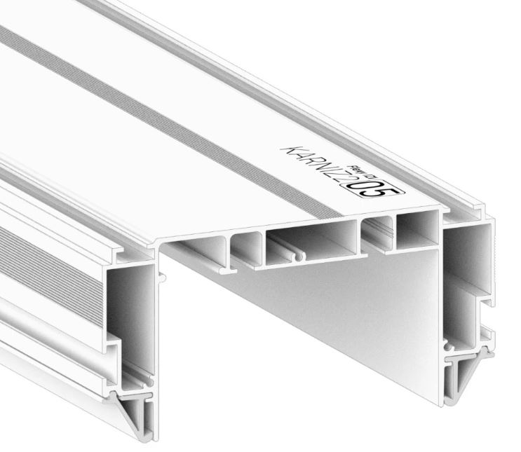 Белый профиль Flexy IZI KARNIZ2 05 для изготовления скрытых п-образных карнизных ниш с двумя пазами для установки штор и гардин. С подсветкой.