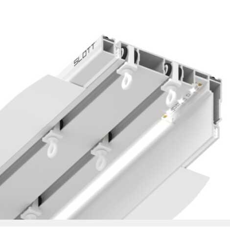 Система SLOTT Parsek — механический двухрядный карниз. Первый ряд предназначен для штор, второй для тюля. Профиль выполнен из цельного алюминия. Карнизная система образует нишу благодаря специально разработанному выступающему краю. Таким образом, бегунки скрыты от глаз, видимой частью остается только сама штора. Профиль поставляется в комплекте с демпфером