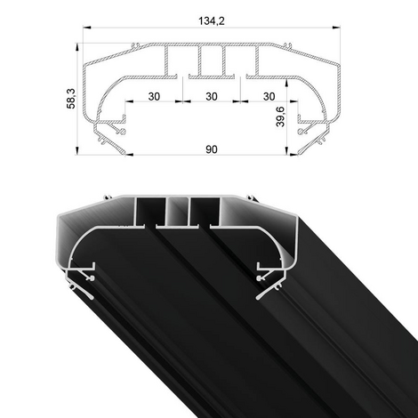 Скрытый карниз Novus: Представляет собой цельнометаллический профиль белого или черного цвета с двумя рядами для крепления крючков. Карниз имеет оптимальную глубину, позволяющую скрыть крючки и складки шторы. Возможна установка светодиодной ленты для подсветки штор. Конструкция профиля предусматривает фиксацию полотна при помощи гарпунной системы крепления. Паз для фиксации гарпуна закрывается маскирующей вставкой, алюминиевой или ПВХ. Оптимальное решение для оформления оконного пространства в любом помещении.
