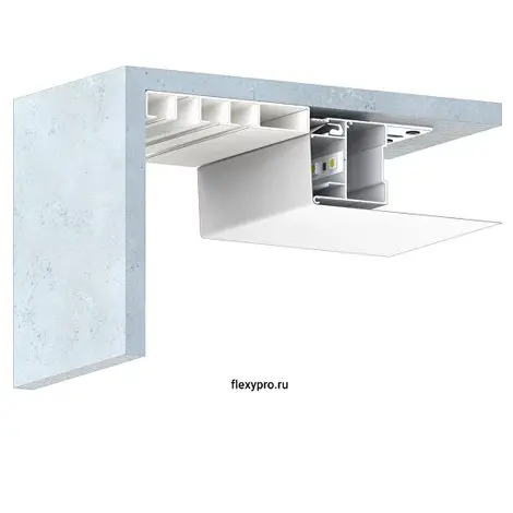 Профиль Flexy BRUS 01 для натяжных потолков с гарпунной системой крепления полотна. Для изготовления конструкций, ниш, обхода сложных стен. C полкой для светодиодной ленты.