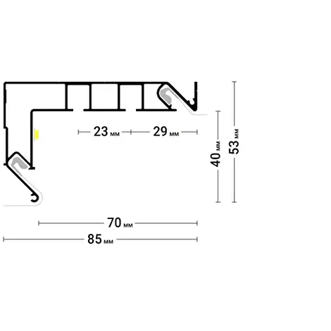 Профиль Flexy GARDINA2 02 (профиль ПФ 8048-GARDINA2 02) для изготовления скрытых карнизных ниш с двумя пазами для установки штор и гардин. Для гарпунной системы крепления полотна с боковой заправкой.