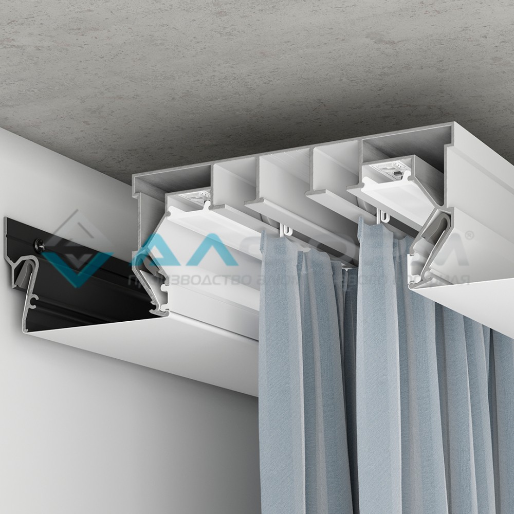 Длина профиля - 3,0м, 2 ряда для крепления штор.
