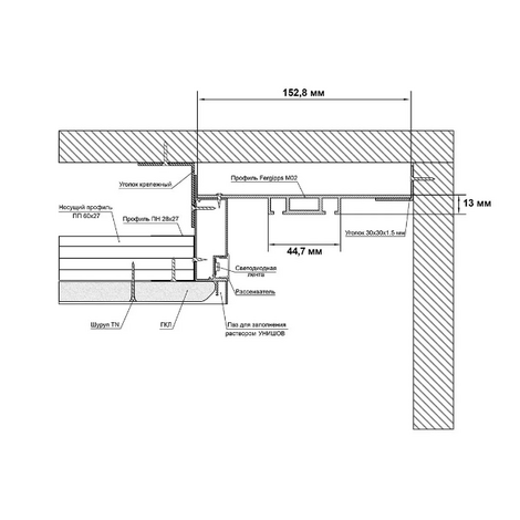 Профиль М 02 белый 3,2м Скрытый карниз 2х рядный FERGIPPS