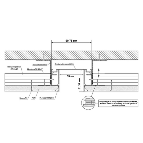 Профиль НЛ 50 2м Черный ниша 55мм FERGIPPS