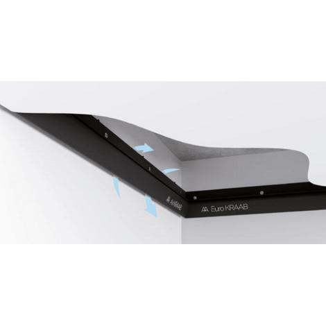 Решение реализуется с помощью пластиковых проставок в профиле, которые создают вентиляционное отверстие между стеной и полотном. AIRKRAAB стыкуется с EuroKRAAB и EuroKRAAB Strong. Для достижения положительного результата, необходимо применить AirKRAAB не менее, чем на 10% площади помещения.