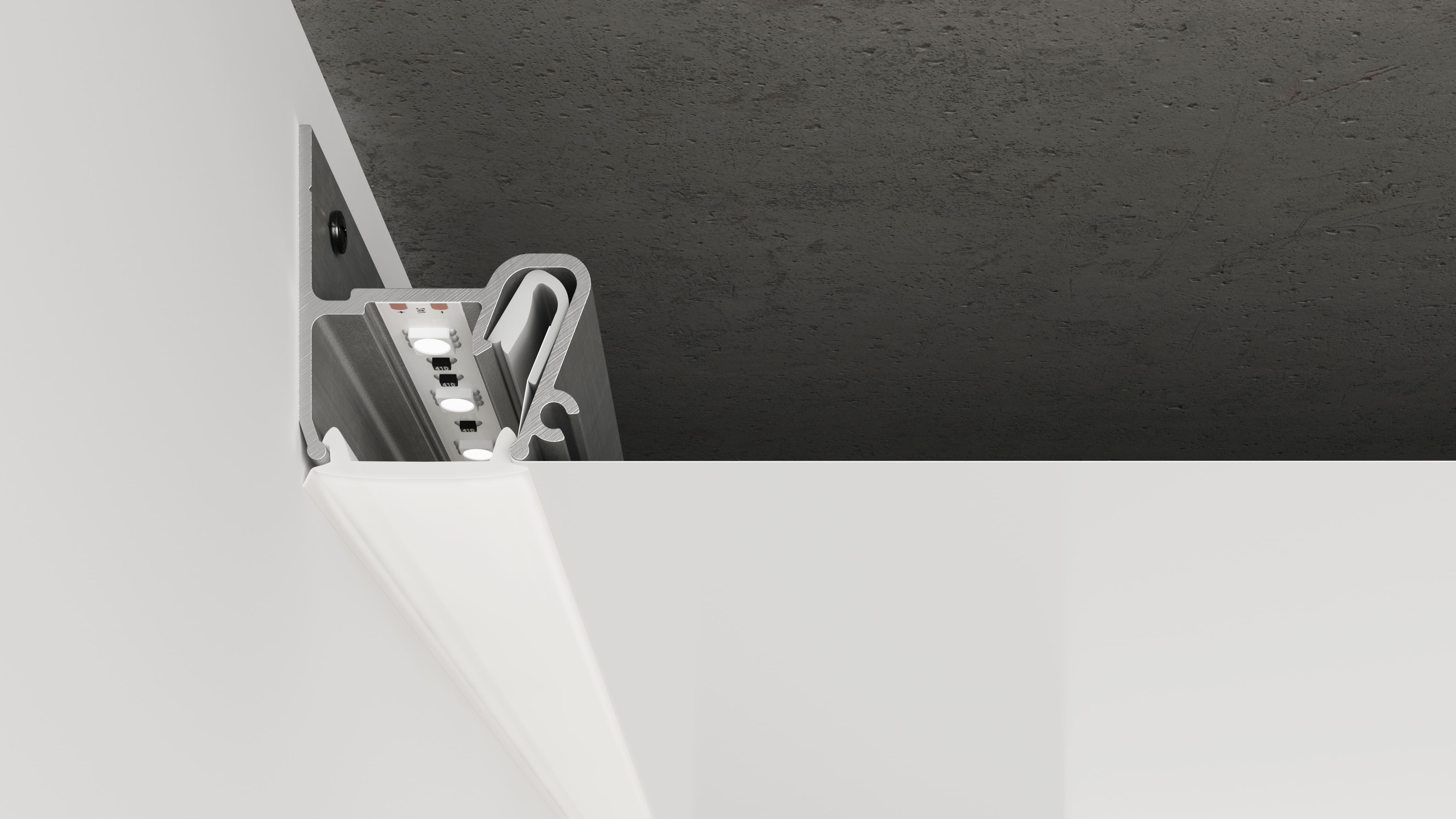 Профиль Alteza Respect-ST для монтажа натяжных потолков с эффектной контурной подсветкой по периметру.
