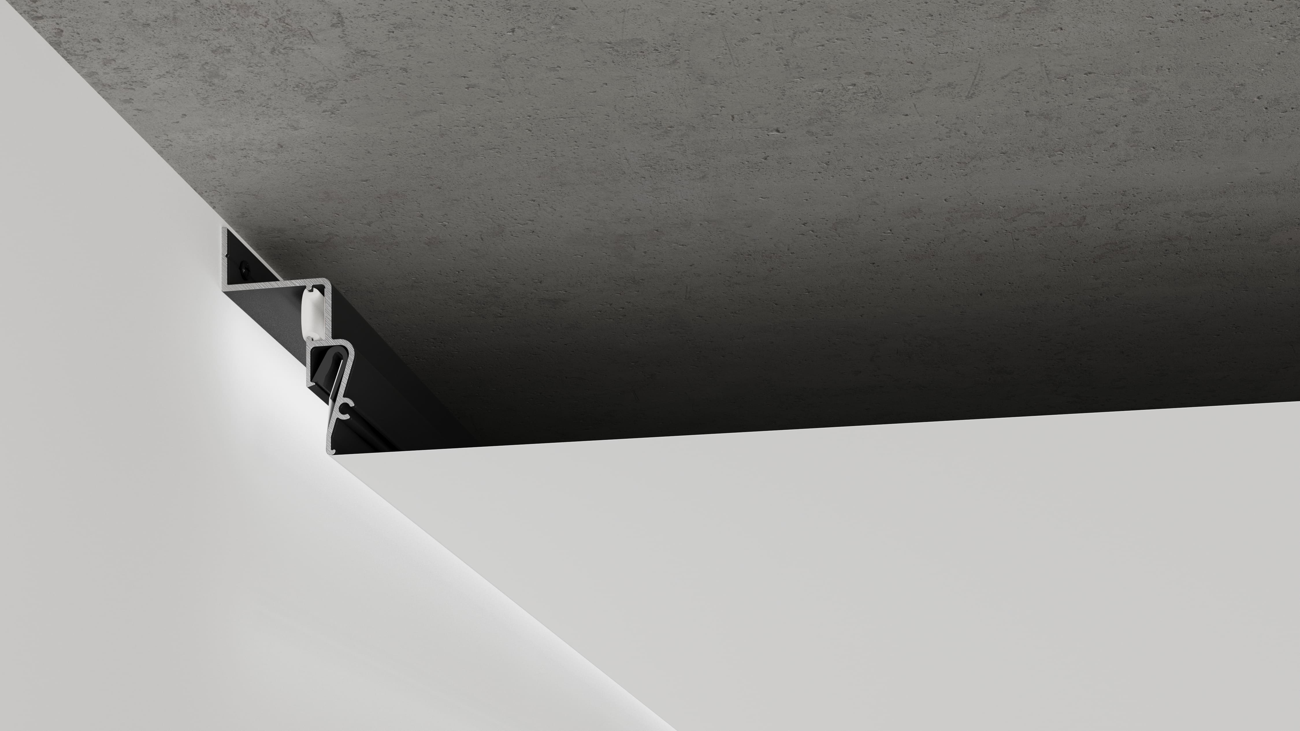 Стеновой профиль Contour-Pro для парящей подсветки вдоль стен c использованием светодиодной ленты и светорассеивающей вставки.
