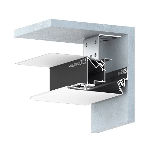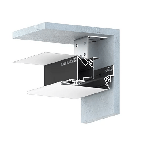 Стеновой профиль Flexy EURO 02 с теневым зазором для натяжных потолков с гарпунной системой крепления полотна.