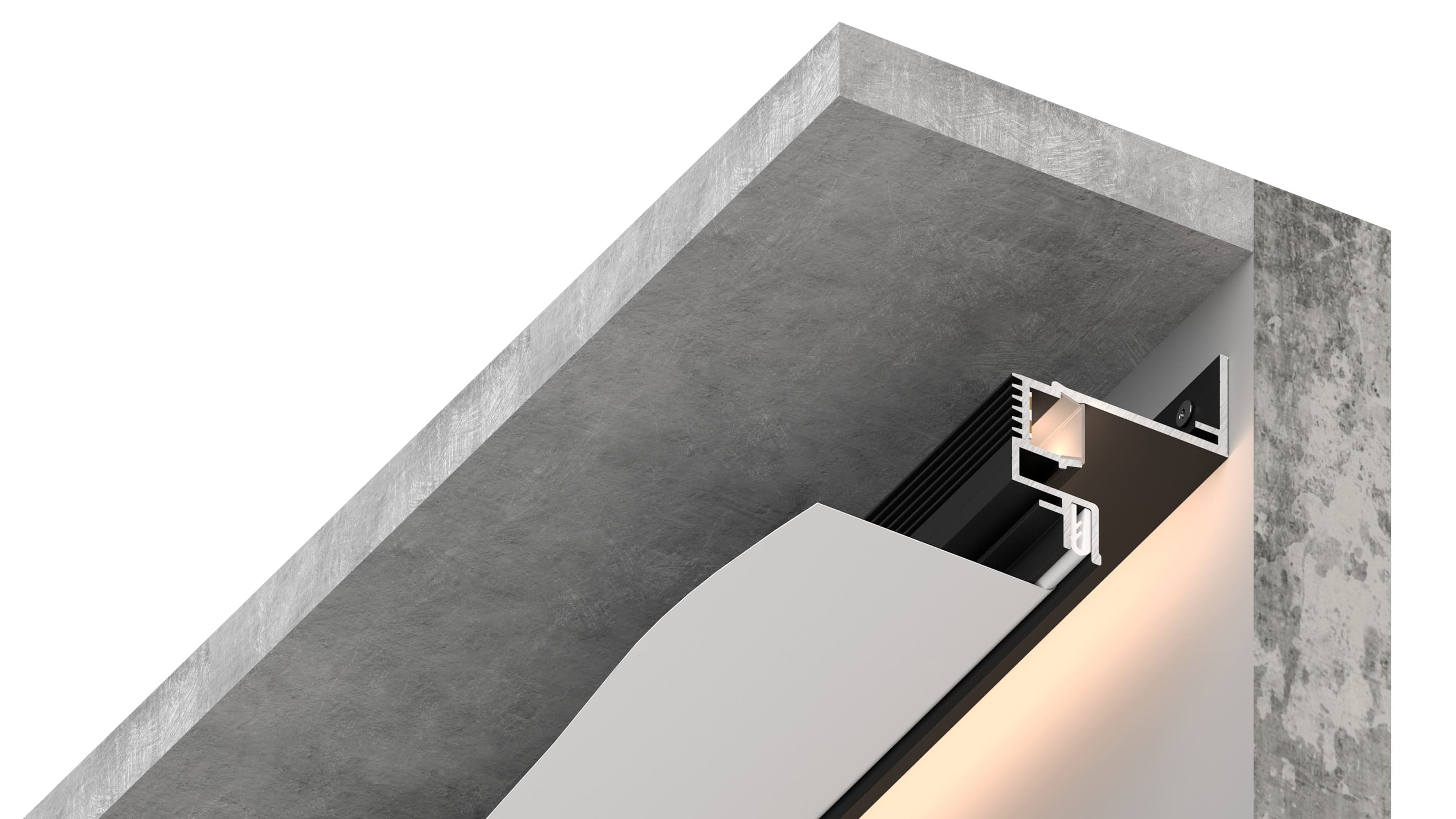 Профиль парящий SLOTT VILLAR mini - это инновационное решение для создания эффекта "парящего" потолка. Профиль позволяет добиться визуально лёгкого, невесомого потолка, который словно зависает в воздухе благодаря скрытой светодиодной подсветке. Данный профиль имеет фиксированное расстояние от стены в 25 мм, что позволяет свету мягко рассеиваться вдоль стены, не подчёркивая её неровности.