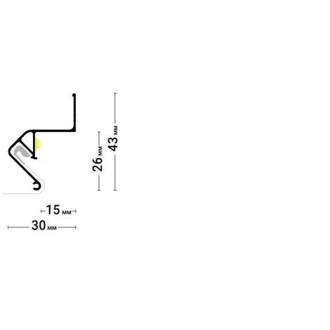 Стеновой парящий профиль Flexy FLY 01 для натяжных потолков с гарпунной системой крепления полотна. С полкой для светодиодной ленты. Без светорассеивающей вставки.